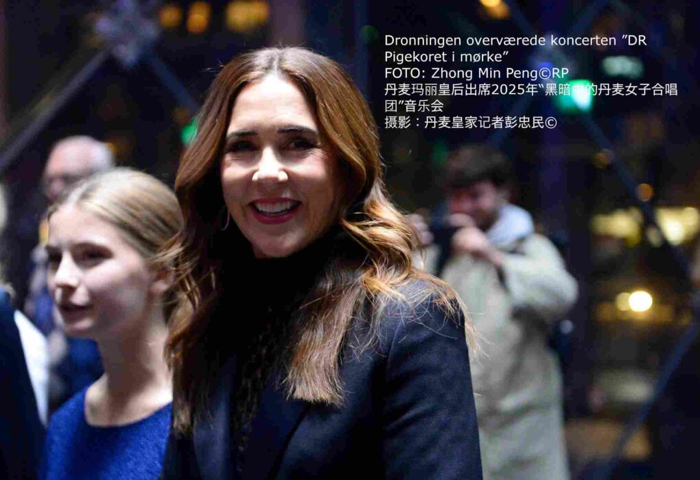 本网《丹麦皇家》杂志2025年10月7日,哥本哈根市讯(丹麦皇家记者:彭忠民;特约记者 :王瞻远)10月6日晚上,丹麦玛丽皇后出席在丹麦皇家音乐厅举行的“黑暗中的丹麦女子合唱团”音乐会。 玛丽皇后抵达音乐厅时,受到了丹麦皇家音乐厅、丹麦皇家合唱团及管弦乐团总监金·波尔、丹麦女子合唱团艺术总监安妮·卡琳·普里普和丹麦女子合唱团歌手的热情迎接。 这场音乐会不仅演奏了丹麦20世纪80年代的旋律,还演奏了口琴演奏家马蒂亚斯·海瑟的新作。 值得一提的是:该音乐会是在黑暗中进行,合唱团没有指挥,合唱团指挥夏洛特·罗文在钢琴旁伴奏。 (摄影:丹麦皇家摄影师彭忠民© ;编辑:王应于,李顺萍, 赵竟硕)