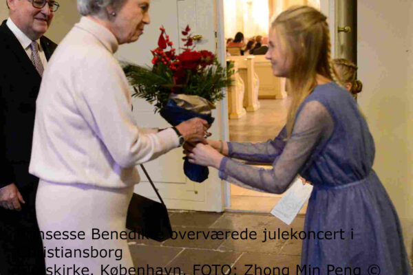 AF: Kilde: KongehusetFOTO: Zhong Min Peng ©RP H.K.H. Prinsesse Benedikte overværede den 22. november 2025 en stemningsfuld julekoncert i Christiansborg Slotskirke. Koncerten blev afholdt af de islandske kor i København i samarbejde med Islands ambassade. Ved ankomsten blev Prinsessen modtaget af blandt andre Islands ambassadør, Pétur Ásgeirsson, der bød velkommen til årets musikalske fejring. Aftenens…