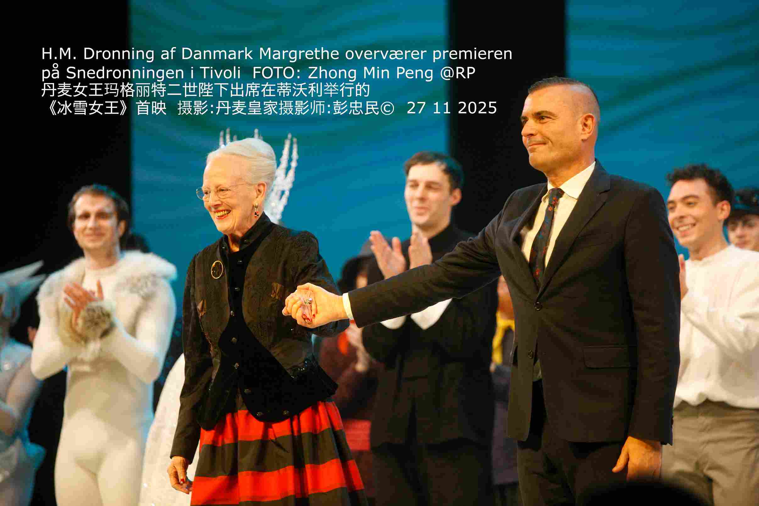 本网《丹麦皇家》杂志2025年11月27日哥本哈根市讯(丹麦皇家记者:彭忠民;特约记者 :王瞻远,廖子淇)2025年11月27日,丹麦玛格丽特二世女王在哥本哈根蒂沃利音乐厅出席童话剧《冰雪女王》首演。 随同观演的嘉宾包括丹麦的尼古拉伯爵阁下及贝妮迪克特公主殿下等。 本次演出中,玛格丽特女王以舞台与服装设计顾问的身份担任荣誉嘉宾。作为该剧的舞美及服装设计者,女王全程参与了此次复排演出的创意筹备工作。 《冰雪女王》根据安徒生1844年的同名经典童话改编,讲述了两位儿童格尔达与凯的友情考验:凯被一面魔镜的碎片击中并遭神秘的冰雪女王带走,格尔达为拯救好友踏上一段充满考验的冒险旅程。途中,她穿越奇幻的花园,遇见王子、强盗等人物,并在历经重重抉择后抵达雪后冰宫。 该剧呈现了安徒生童话中独特的魔幻色彩与深刻情感,被视为适合儿童与成人共同欣赏的动人故事。故事核心围绕凯与格尔达的深厚情谊展开,当恶魔之镜碎裂、碎片刺入凯心中,他逐渐被冰雪女王的美丽与冷漠所吸引,最终迷失于她的冰宫之中。 安徒生于1805年4月2日出生于丹麦欧登塞,是世界上最著名的文学家之一,以童话创作享誉全球。其作品以丰富想象力、魔幻元素及深刻情感著称,一生创作了约200篇童话,至今仍深受世界各地读者喜爱。他的代表作包括《丑小鸭》《皇帝的新装》《海的女儿》《冰雪女王》等。 安徒生于1875年8月4日逝世,但其文学遗产经久不衰,被不断改编为电影、戏剧与动画等多种形式。他的作品以永恒的魅力、智慧与启迪滋养着一代又一代读者。 (摄影:丹麦皇家摄影师彭忠民© ;编辑:王应于,李顺萍, 赵硕)