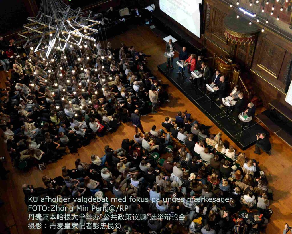 本网《丹麦皇家》2026年3月19日(丹麦皇家记者:彭忠民;特约记者:廖子淇,王瞻远)3月18日,丹麦哥本哈根大学举行选举辩论活动,聚焦青年关切议题。