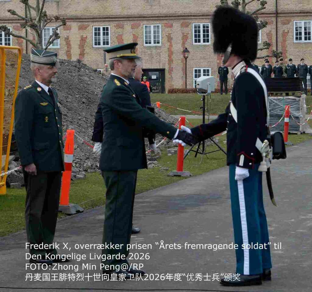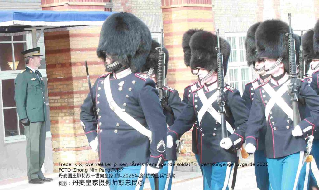 本网《丹麦皇家》2026年3月12日(丹麦皇家记者:彭忠民;特约记者:廖子淇,王瞻远)3月11日,丹麦国王腓特烈十世出席丹麦皇家卫队阅兵仪式,并向2026年度“优秀士兵颁奖。