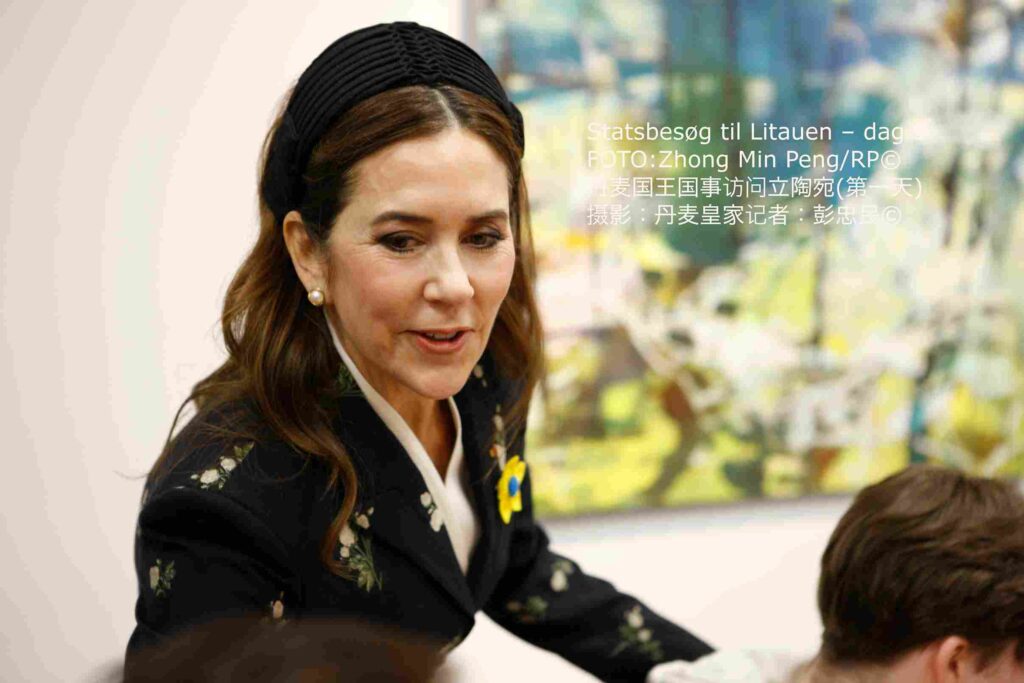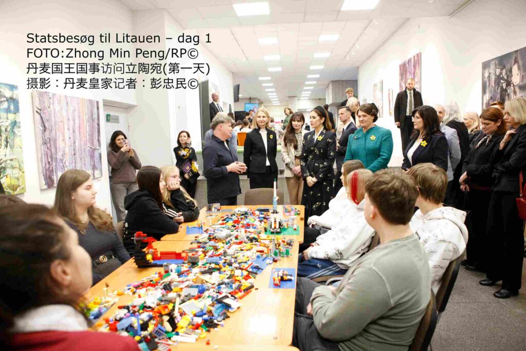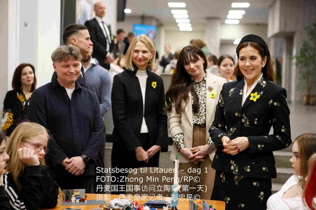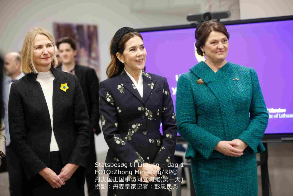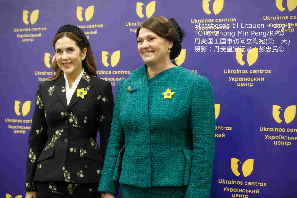 丹麦玛丽王后在第一夫人戴安娜·瑙塞迪涅陪同下参观了维尔纽斯的乌克兰中心,了解该中心为乌克兰家庭营造安全、日常生活秩序与社区凝聚力所开展的工作情况。