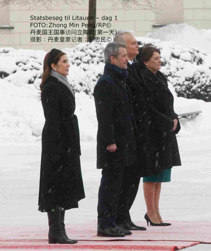 1月28日下午,在维尔纽斯总统府,丹麦国王与王后受到立陶宛总统吉塔纳斯·瑙塞达和第一夫人戴安娜·瑙塞迪涅的正式欢迎,丹麦国王在总统陪同下检阅了仪仗队。