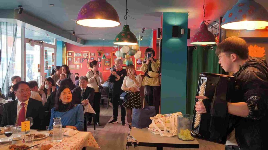 庆典在钢琴演奏中拉开帷幕。华裔青年李肖雅熙先后演奏《我的中国心》与德彪西《Arabesque》,传递海外侨胞的家国情怀,同时彰显中丹文化交流的深厚底蕴。现场氛围温馨热烈,中丹两国嘉宾交流互动,围绕经贸合作、侨胞发展等议题展开探讨,为后续合作奠定良好基础。