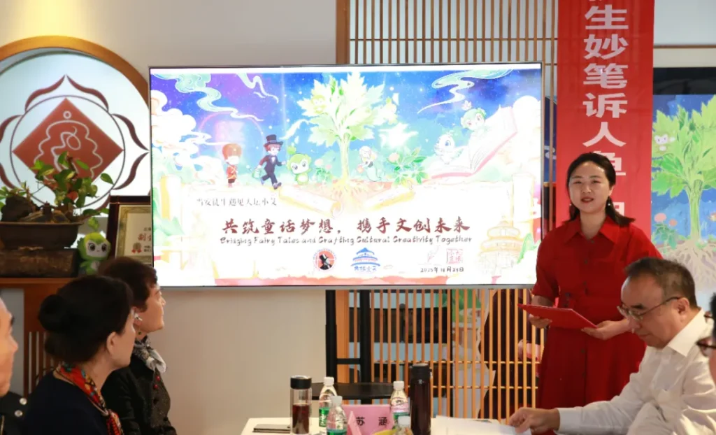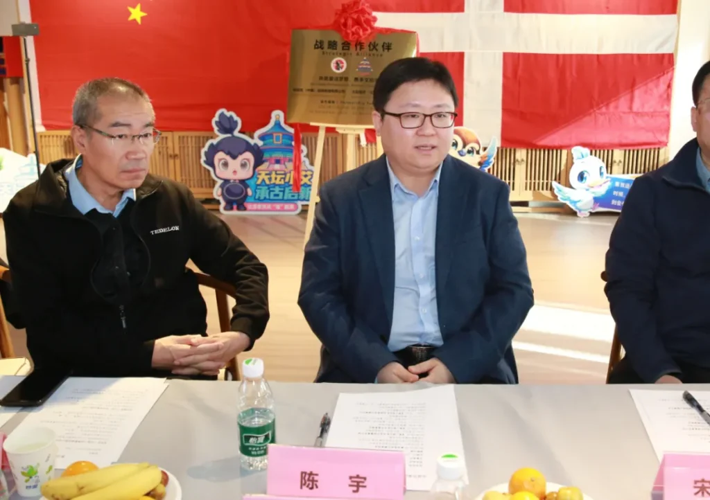 陈飞翔先生发表了热情洋溢的致辞:今天在北京举行中丹合资•安徒生(中国)品牌管理有限公司与太阳载梦公司旗下知名IP”天坛小艾”战略合作发布会,将源自丹麦的经典童话与植根于天坛文化的东方智慧相融合,共同打造一个全新的”童话宇宙+”文化生态,标志着文化IP产业迎来一次里程碑式的”双向奔赴”。本次战略合作将远超简单的联名产品层面。双方计划围绕”中医药科普研学”、”文创出海”等主题,进行深度内容共创与生态共建。安徒生经典的童话角色,将被赋予全新的东方叙事场景,通过”天坛小艾”这一文化使者,向世界讲述一个关于”美好生活”的共同故事。