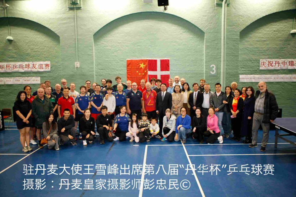 本网《丹麦皇家》杂志2025年11月10日哥本哈根市讯(丹麦皇家记者:彭忠民;特约记者 :王瞻远,廖子淇)11月9日, 由丹麦华人乒乓球总会和哥本哈根乒乓球俱乐部联合主办的第八届“丹华杯”乒乓球比赛,在哥本哈根隆重举行。中国驻丹麦大使王雪峰应邀出席开幕式并致辞。