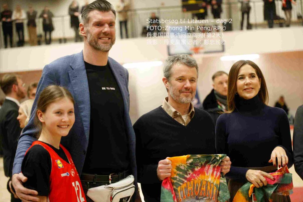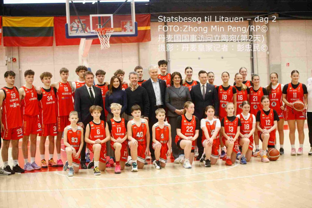 1月29日下午,国王夫妇与总统夫妇访问了维尔纽斯的NBA篮球学院。这所面向儿童和青少年的现代化训练与发展学校,由NBA与立陶宛合作伙伴共同设立。学院为6至18岁的青少年提供NBA训练课程和比赛,培养体育人才并促进篮球运动。篮球在立陶宛享有“国民运动”的特殊地位,该学院在推动精英培养与大众体育发展方面发挥着重要作用。访问期间,国王夫妇与总统夫妇观看了青少年球员的训练,并深入了解学院的日常运作、团队精神及其对立陶宛青少年体育发展的意义。