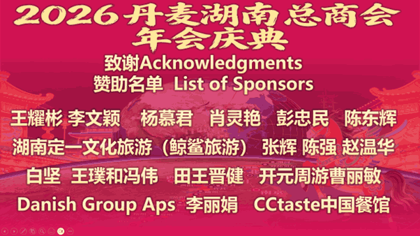 七年耕耘,硕果累累。丹麦湖南总商会已成为海外湘侨的重要平台和中丹交流的重要纽带。站在新的起点上,商会表示将继续凝聚侨力,深化经贸、科技与文化合作,推动湖湘文化走向世界,为中丹关系发展注入新动力,在中丹建交75周年的重要节点上谱写更加精彩的合作篇章。