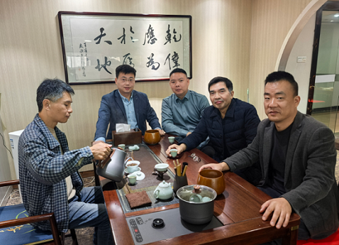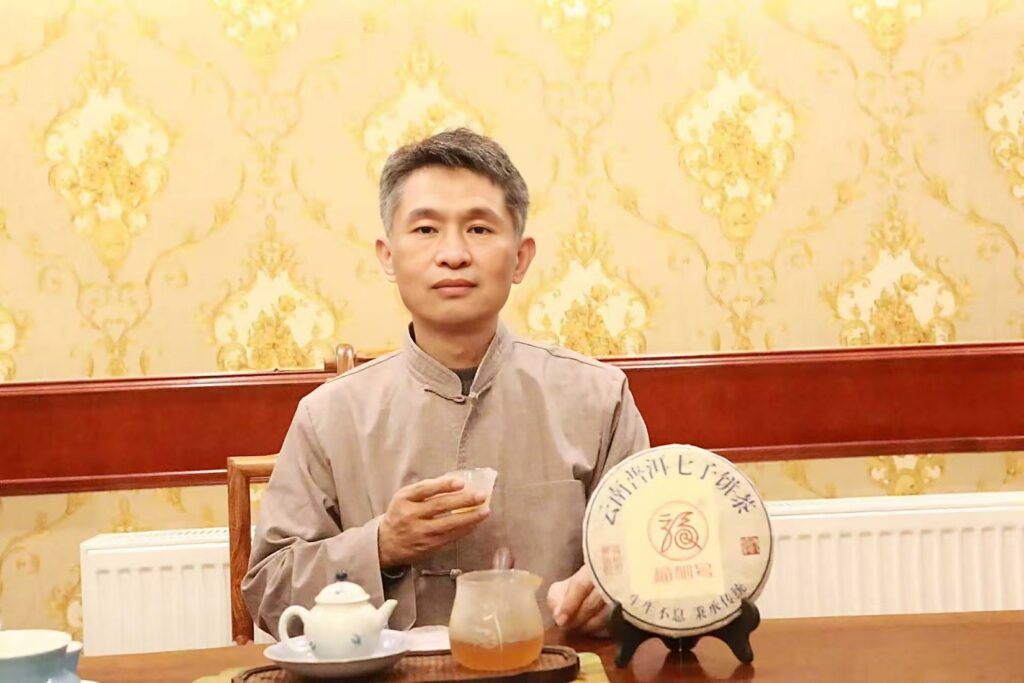 张欣文首先向彭先生一行介绍自己制茶历程:从上市公司离职后,他深入海跋最高、茶树最大、茶树龄最长的云南各个山头,抓住苦化甘、涩转甜的传统制茶工艺的核心,保持普洱茶后期能够自然发酵来制茶,使得7年后的普洱茶口感柔甜,从而可较长时间收藏和品尝;同时通过对不同年份的普洱茶比较和品鉴,不断琢磨研究规范制茶工序,自己正通过申请发明专利,来别于早期提香的高温杀青制茶工艺。