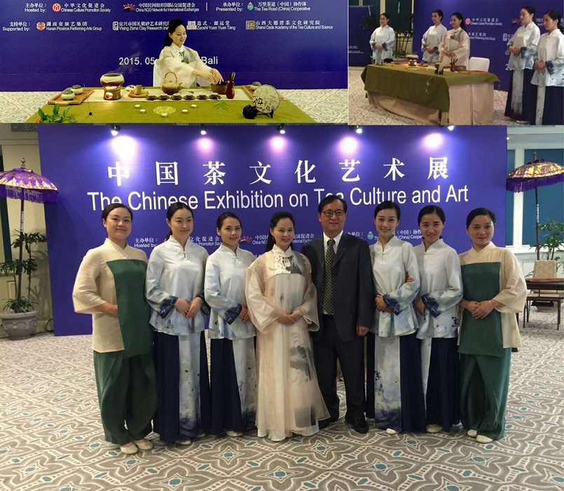 在品茶交谈中,大家饶有兴致的回忆张欣文参与的一件有特别意义的往事:中国文化促进会湖南分会曾聘请廖子淇老师,以“万里茶道”、“一带一路”为视觉切入来编排《中国茶礼》节目,节目评审通过后,茶艺师表演团先后随国家领导人出访蒙古和东南亚等国,举办“中国茶文化艺术展”。张欣文有缘为《中国茶礼》节目提供了唐朝特有的仿古茶具,这样随同他制作的“福杺号”临沧高杆古树普洱茶一起走出国门、漂洋过海,为各国领导人和外国朋友奉献了盛唐茶礼……