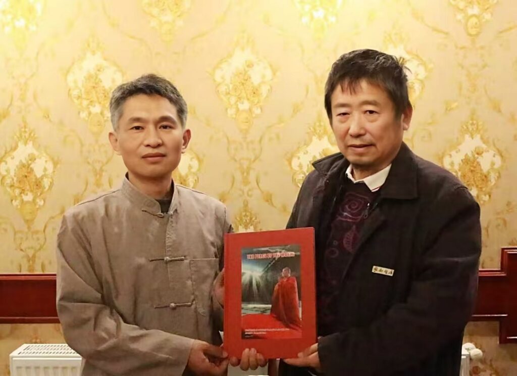 参访结束时,张欣文向彭忠民先生赠送“福杺号”临沧高杆古树普洱茶,彭忠民先生回赠他的专著《世界和平》,并表示将“福杺号”普洱茶带到北欧让更多人品赏。