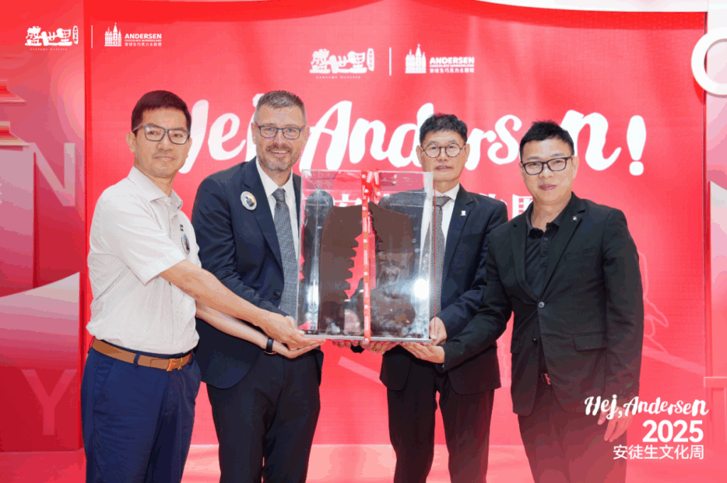 8月16日,中丹两国文化界代表、安徒生品牌方及数百名嘉宾齐聚宁波,开启为期一周的以安徒生童话之名的文化盛宴。丹麦安徒生协会主席符文·卡拉格、丹麦皇家杂志社社长彭忠民、丹麦中国友好协会会长赵温华先生、安徒生(中国)品牌管理有限公司董事长陈飞翔、宁波前湾控股集团有限公司励达等嘉宾共同见证。