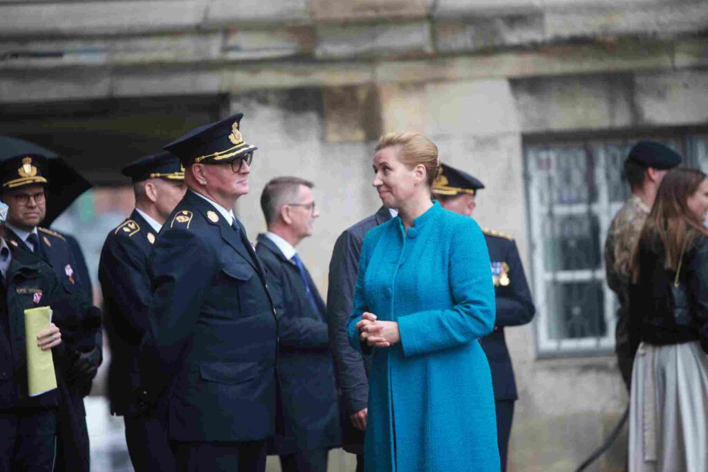 Statsminister Mette Frederiksen, rigspolitichefen og vice-statsministeren samt forsvarsministeren holdt taler under paraden.